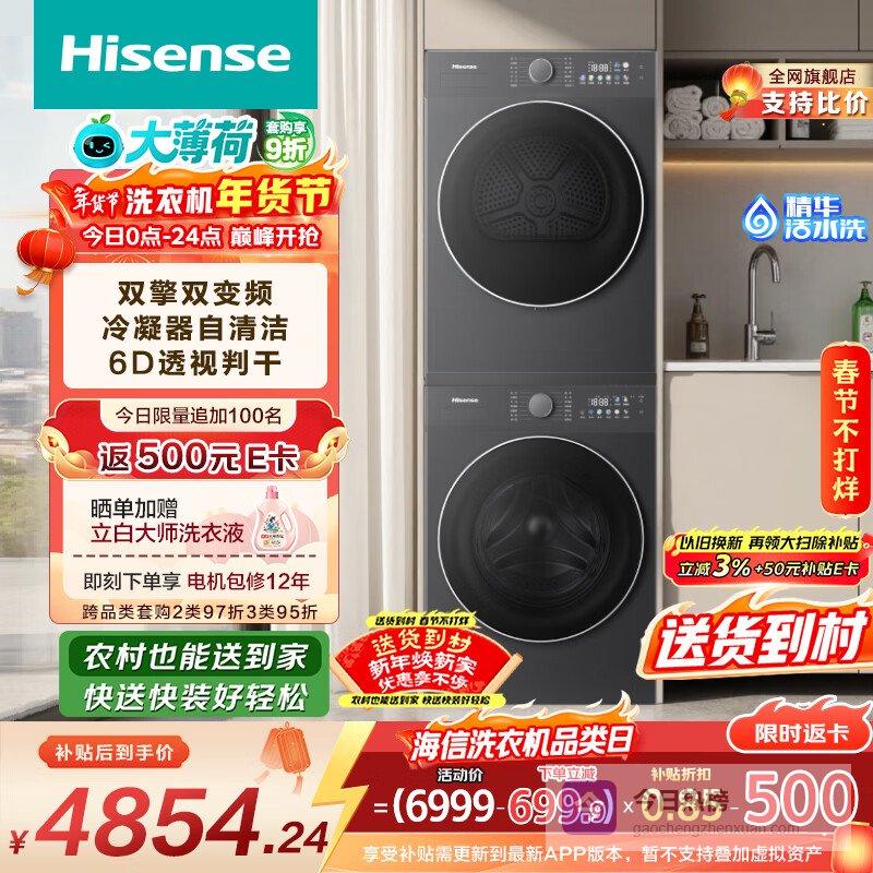【京东自营】海信大薄荷洗烘套装10KG滚筒洗衣机+双擎双变频泵烘干机1.25洗净比国家补贴WF100¥
