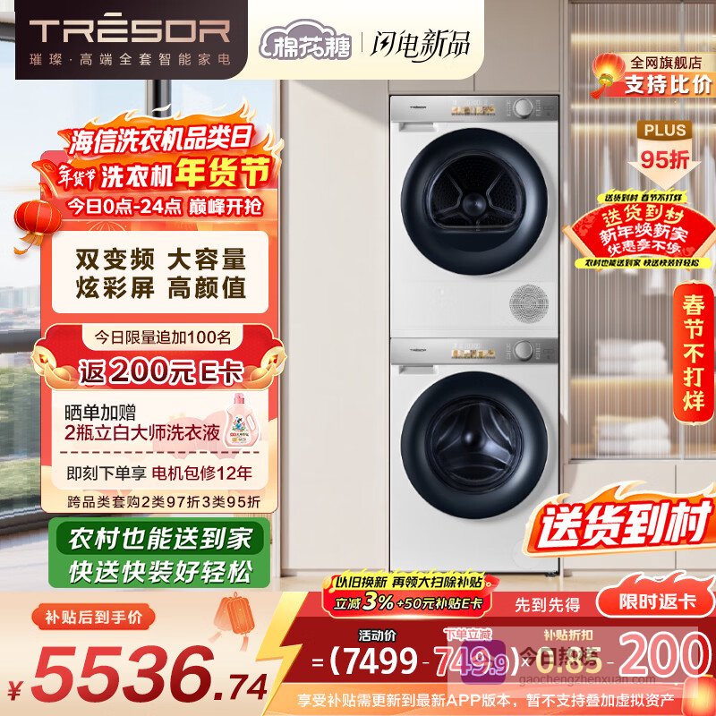第八款:海信璀璨洗烘套装MAX12KG洗衣机+热泵烘干机