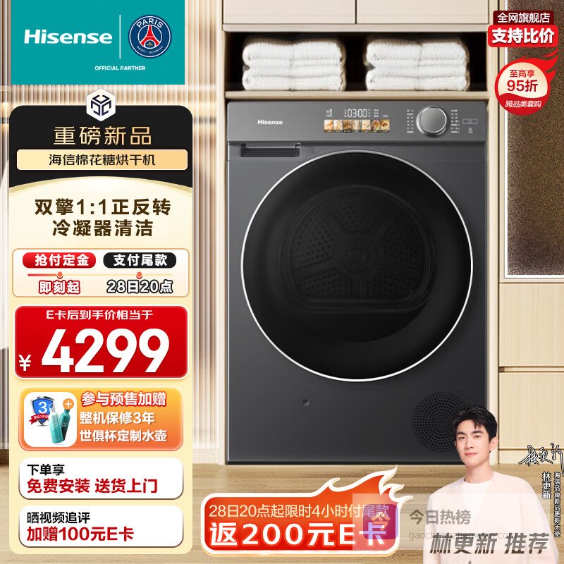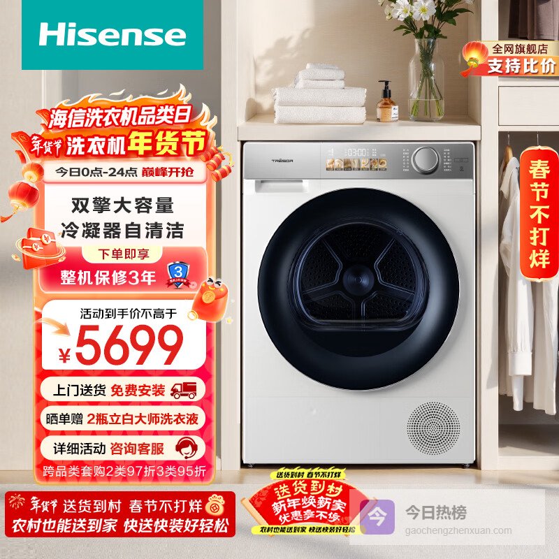【京东自营】海信烘干机家用棉花糖M5SUltra10公斤大容量干衣机双擎双变频热泵羊毛烘DH100M¥