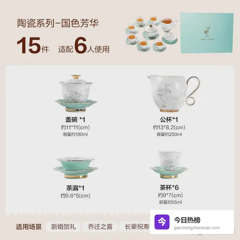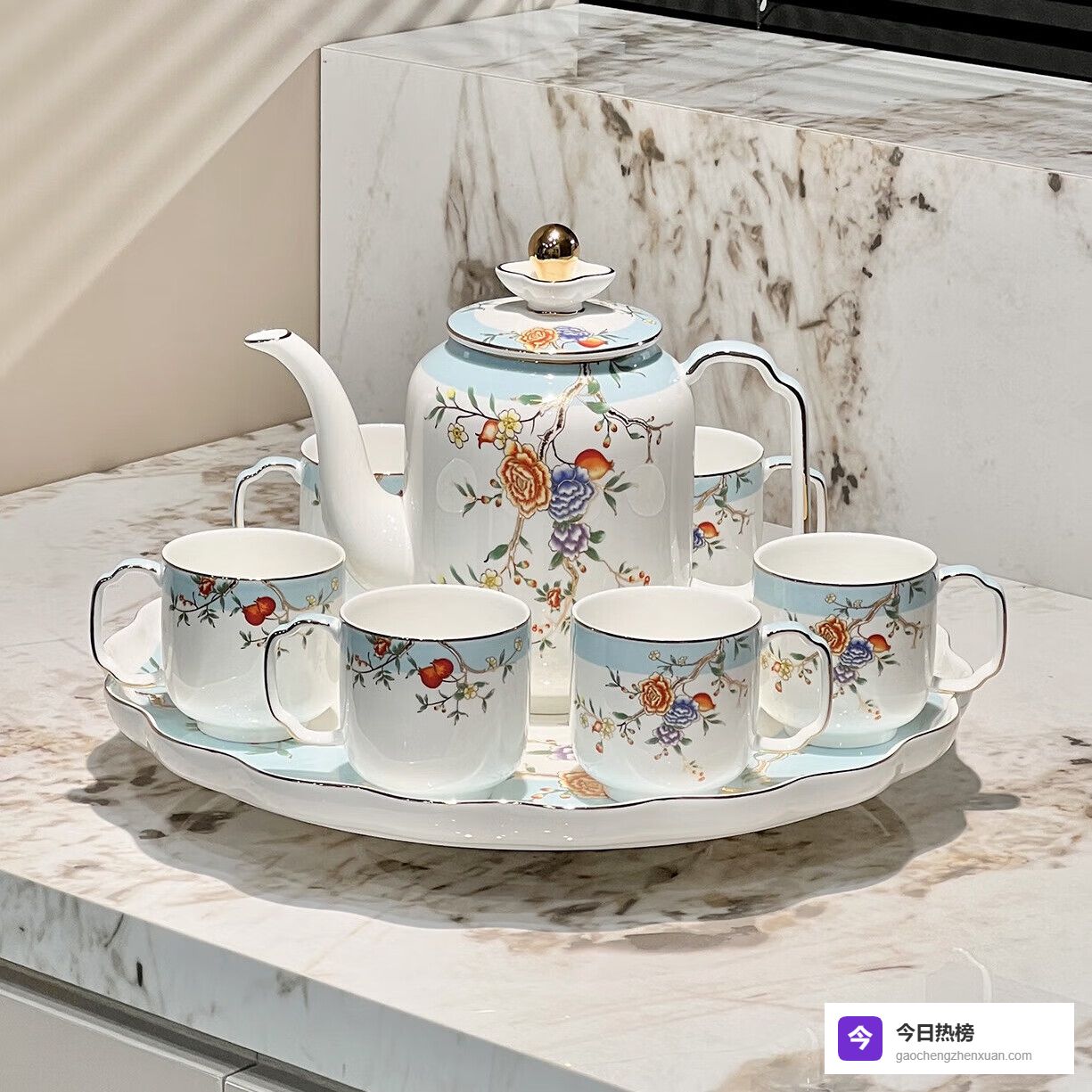 【商品推荐】3:金銮玉夫人茶具套装整套陶瓷家用泡茶茶壶茶杯它用15件大容量组合重新定义家庭茶事的包容性——盖碗、公道杯、六只品茗杯,全部统一花枝主题,但每件器物上的构图位置都略有差异,形成微妙的节奏呼应。釉中彩工艺让图案沉入釉层之下,触感光滑,清洗无忧,久用如新。
