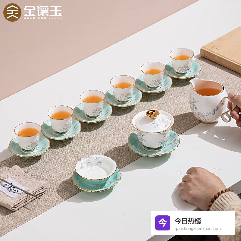 金镶玉功夫茶具套装 整套陶瓷家用喝泡茶骨瓷功夫茶具送礼高档 国色芳华¥