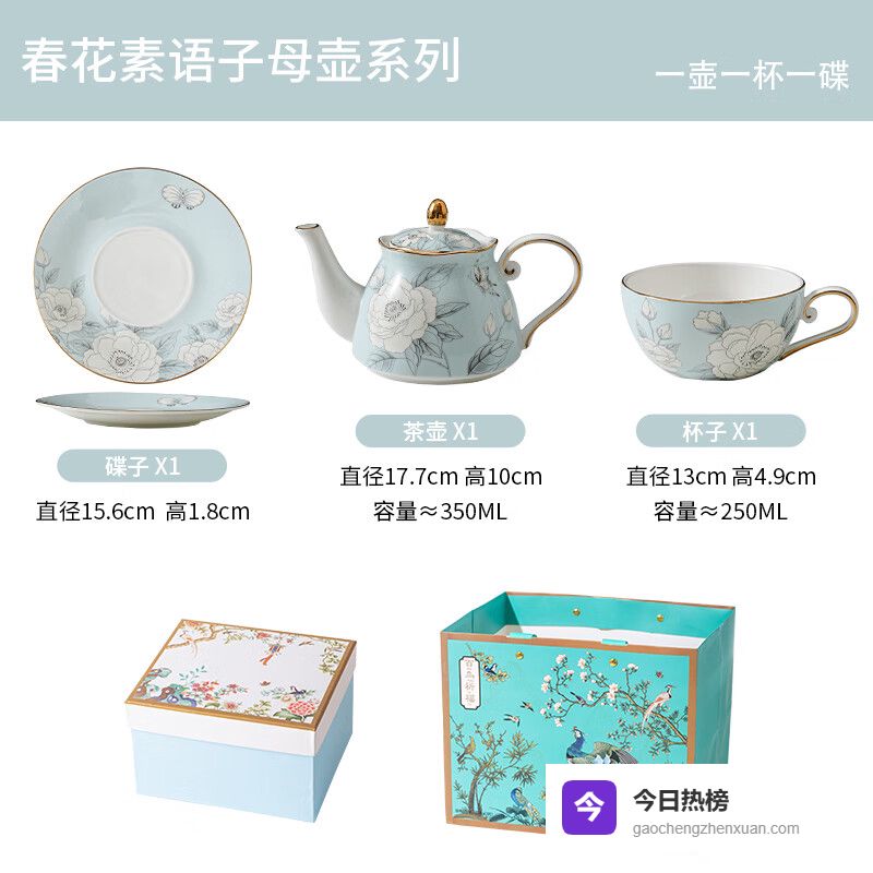 INGRI高档实用骨瓷下午茶茶具套装子母壶伴手礼品家用花茶壶套装泡茶壶 春花素语1壶1杯组(礼盒装)¥