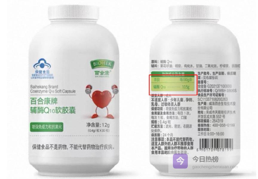 百合康辅酶Q10:采用基础发酵提纯工艺,原料筛选严格,全项资质核验通过,无虚假备案情况。辅料添加少量天然植物油,包装密封性能良好,胶囊溶解速度适中,适配日常长期服用。