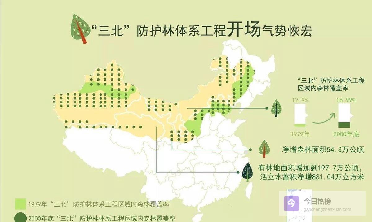 干到2050年,这不是计划,而是誓言1978年,“三北防护林体系工程”正式启动。党中央、国务院对这个工程的目标,没有添油加醋,就是说干,就干到2050年。73年的计划,要搞三代人,第一代人干完,下一代人接着干,直到收成。