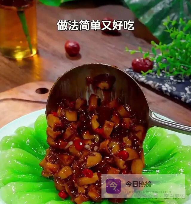 另起锅放入蒜.末和.小米辣炒香,加入焯过水的香菇,用生抽,蚝油和盐调味,.水淀粉勾芡后淋在油菜上。