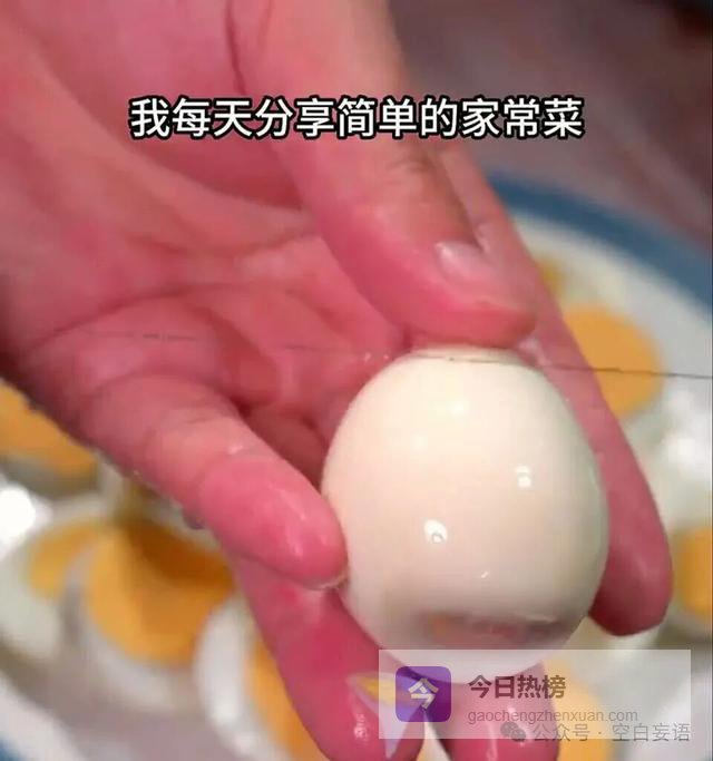第七道虎皮鸡蛋,.做法简单,.香.辣入味,非常下饭。用线.将蒸.熟的鸡蛋切成.片。