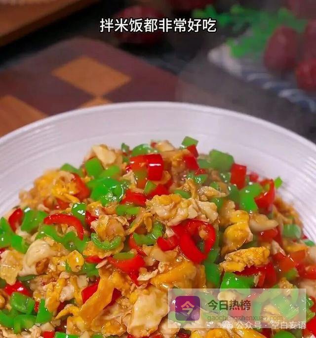 第八道青椒炒鸡蛋,.营养丰富,用来拌米饭.或者面.条都非常美味。青椒.改.刀切小块.。