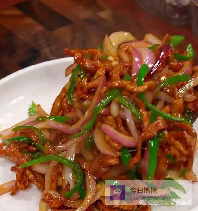 热锅快速炒熟肉丝,倒入.洋葱和青椒炒香,最.后淋入调味料翻炒入.味。