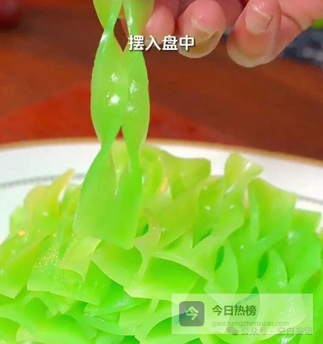水中加.盐和油焯水后.,.莴笋片从中间翻转摆盘。