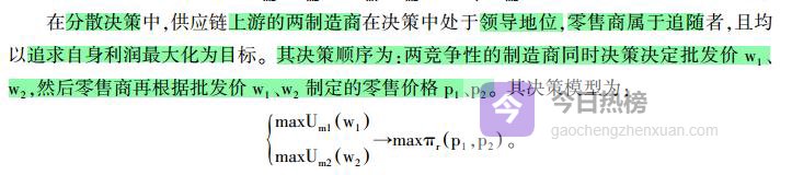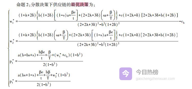 通过推导求解决策模型,得出分散决策下供应链的核心最优决策解,主要包括制造商最优批发价与零售商最优零售价两大定价指标。