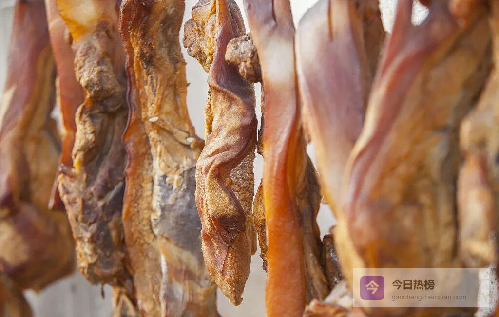 腊月里,徽州人家挂起条子肉。刀板香是招待贵客的“王牌”:整块腊肉下锅焖煮,再捞出横刀切片;案板吸走多余油脂,肥肉晶莹、瘦肉赤红。