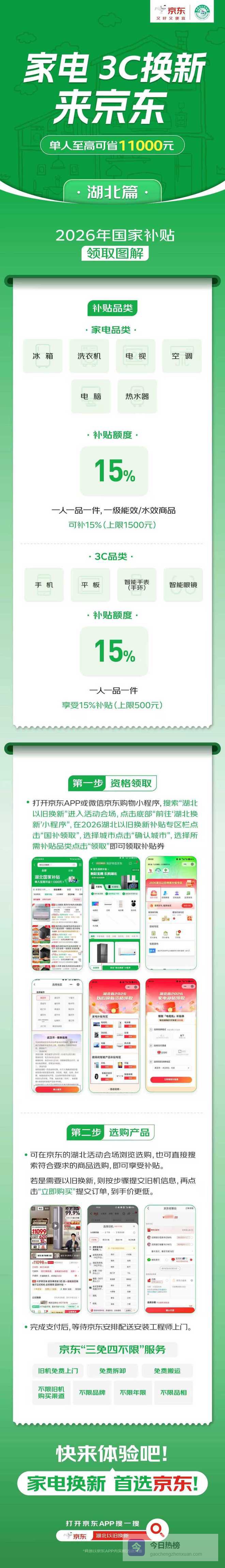 在提升国补体验方面,京东可额外提供家电品类的旧机回收补贴,“送、装、拆、收”一体化服务,以及“三免四不限”服务(即旧机免费上门、免费拆卸、免费搬运;不限旧机购买渠道、不限品牌、不限年限、不限品相)。京东可在为3C数码品类送货上门的同时,完成现场签收、现场激活,让消费者足不出户换新机。
