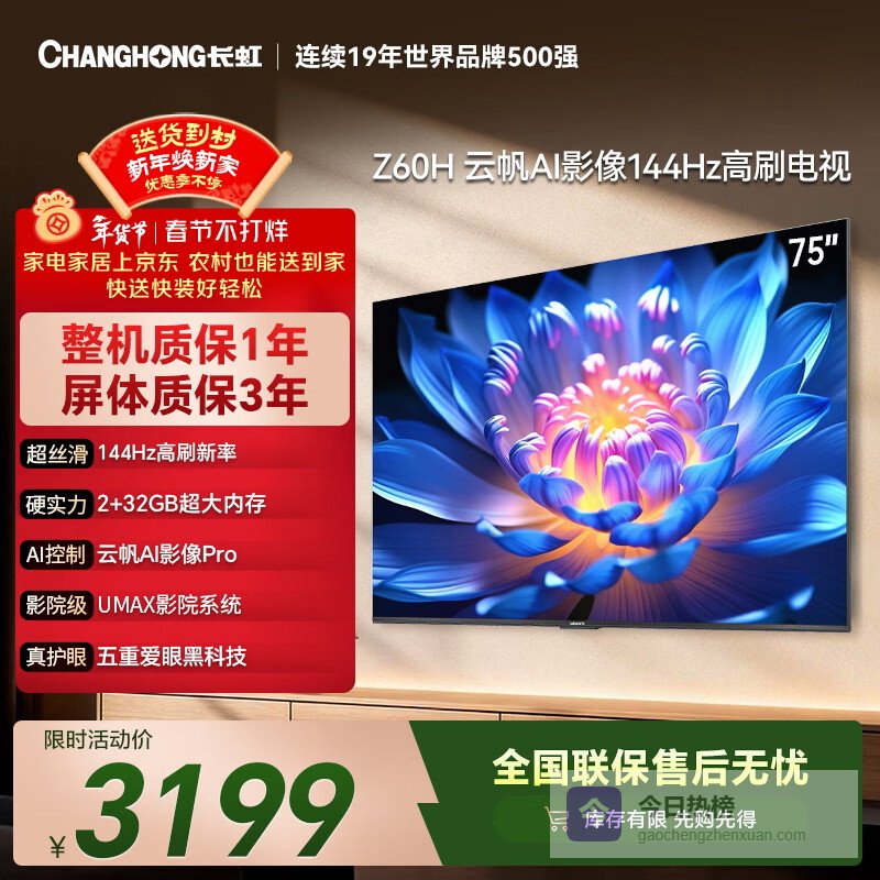 长虹经济款 长虹欧宝丽75Z60H 75英寸 144Hz高刷 2+32GB大内存 平板液晶电视机 ¥