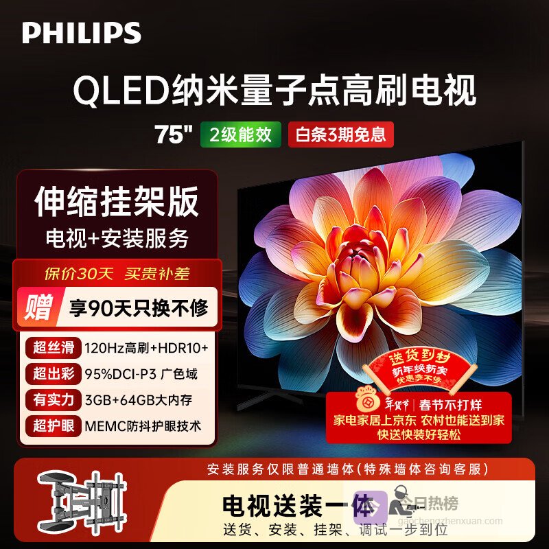飞利浦(PHILIPS)品质款 8599系列75英寸【包安装版-伸缩挂架送装一体】4K智慧屏QLED¥