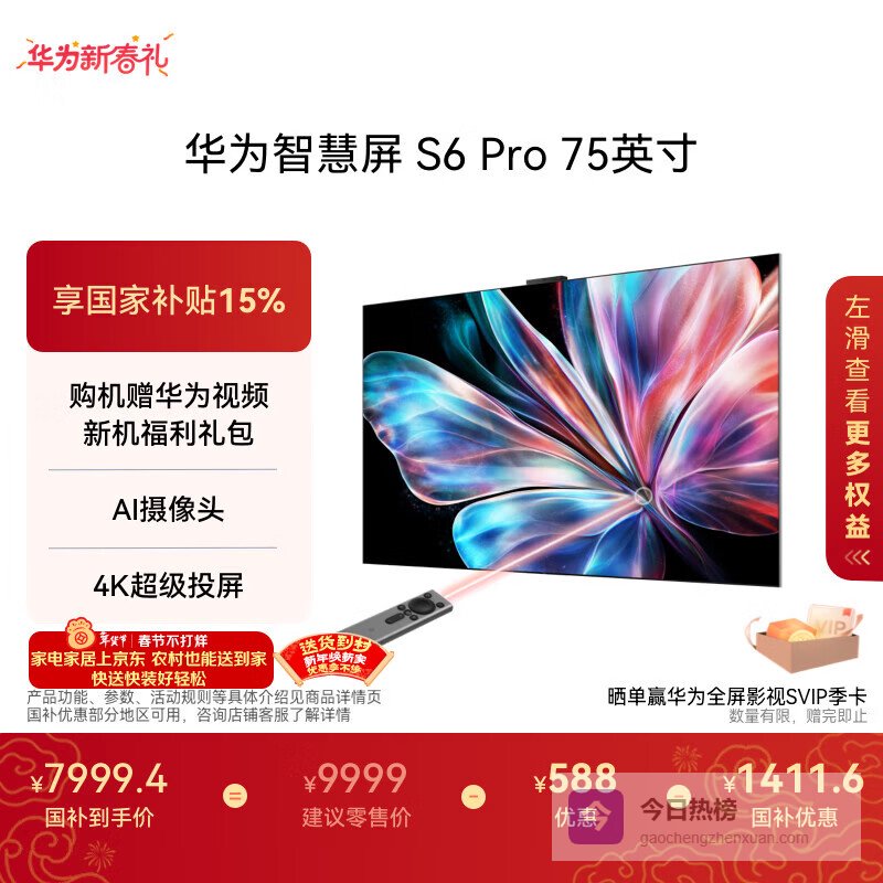 华为智慧屏 S6 Pro 75英寸 Mate 80投屏好搭档 MiniLED 灵犀指向遥控 鸿蒙A¥