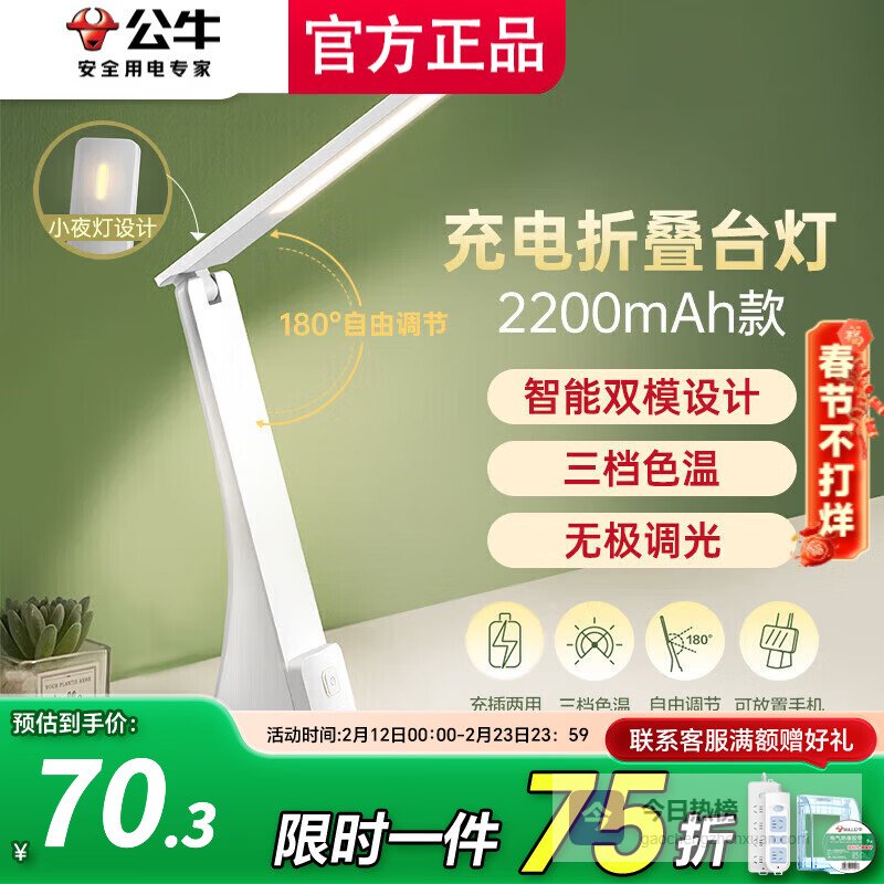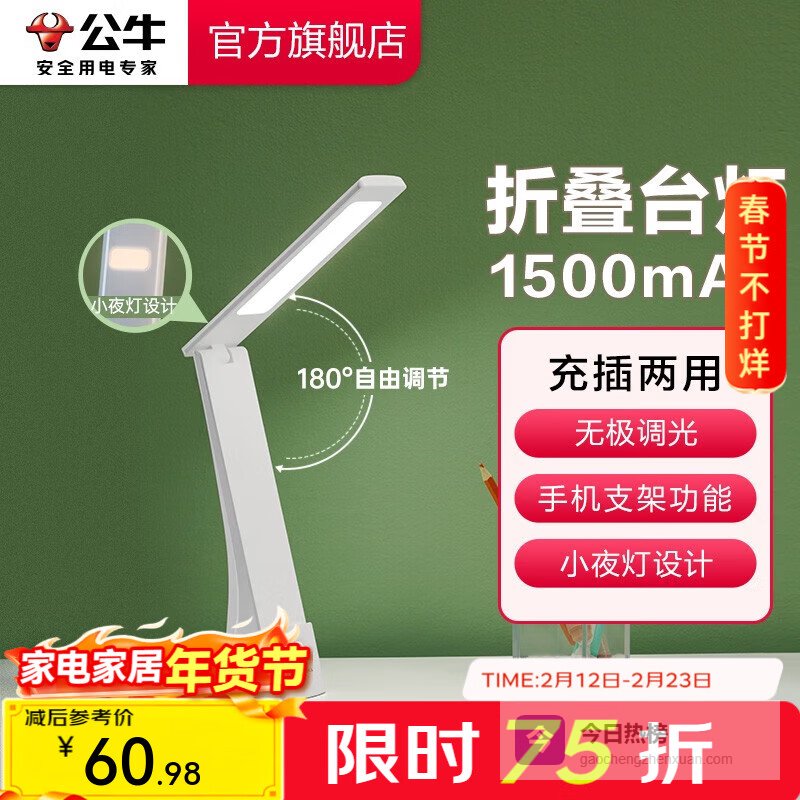 公牛折叠台灯值得买吗,筛选性价比高的几款1、公牛折叠款台灯