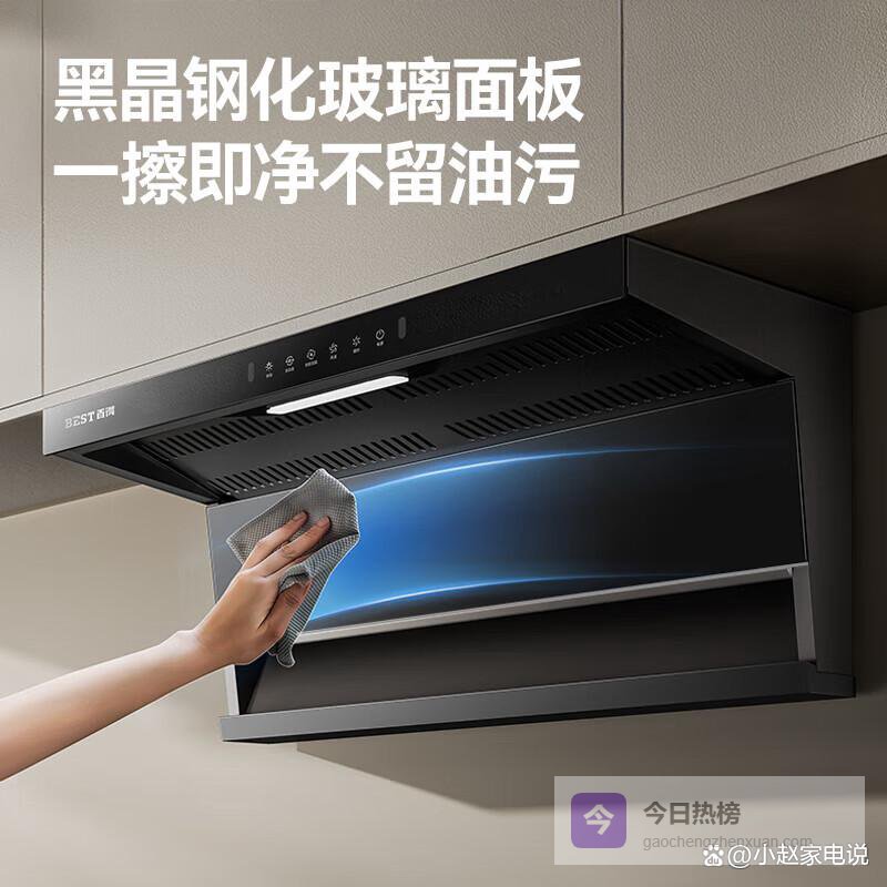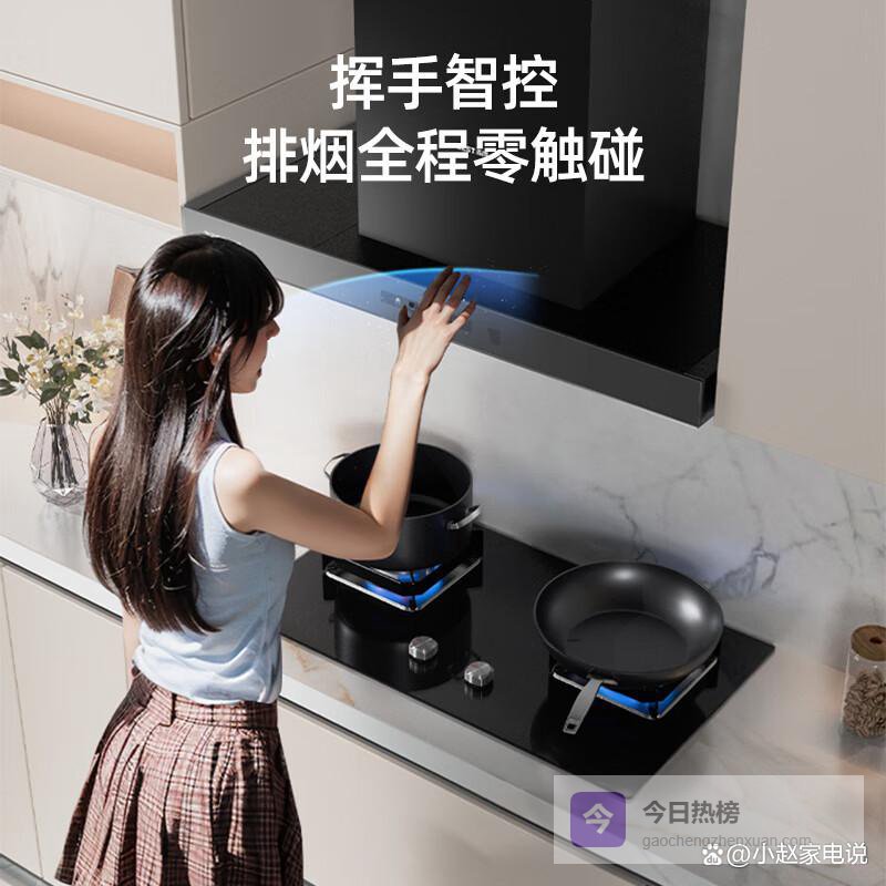推荐理由:这款油烟机采用顶吸+侧吸的双吸设计,可以更全面地覆盖油烟升起的区域,让厨房空气更清新,油烟不易溜走。它的7字型造型还挺时尚,跟各种厨房风格都能搭配得不错,看起来很现代,使用起来也更方便。机身特别纤薄,只有34.5厘米厚,配合橱柜贴得更紧,不占空间,让厨房看起来更宽敞干净。