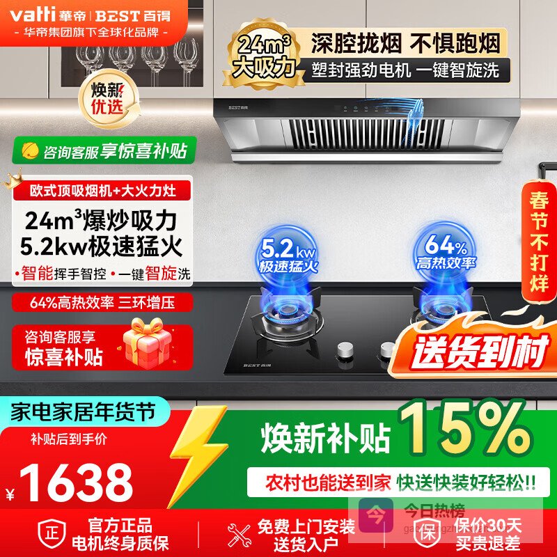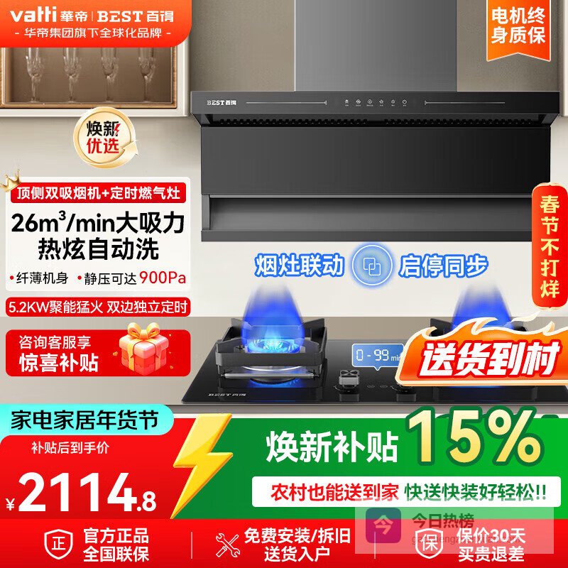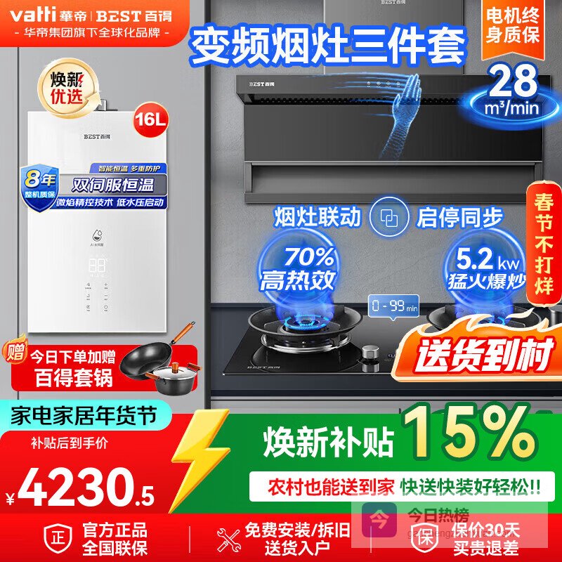 百得(BEST)华帝出品顶侧双吸抽油烟机家用变频烟机灶具套装26立方大吸力挥手智控吸油烟机热水器消毒柜三件套 【热销套装】E652+灶QE301天然气65%热效¥