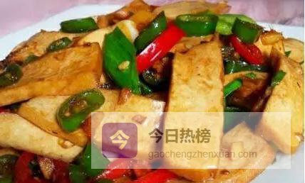 全程大火,豆豉与辣椒的辣油包裹住香干,表面微微起虎皮纹才算合格。
