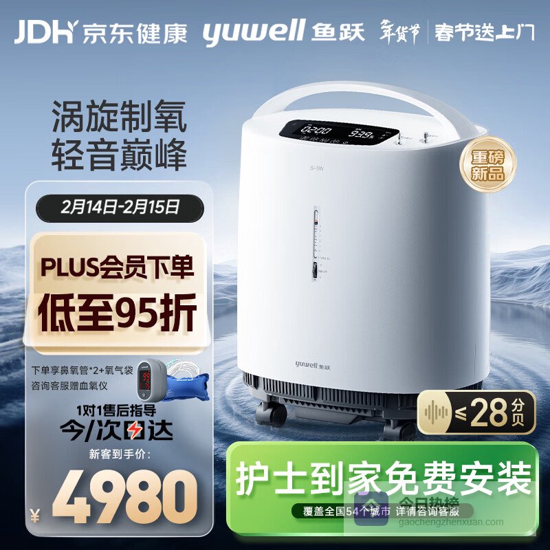 鱼跃(Yuwell)医用分子筛制氧机涡旋吸氧机超轻音家用老人医用氧气机5L流量S-5W¥