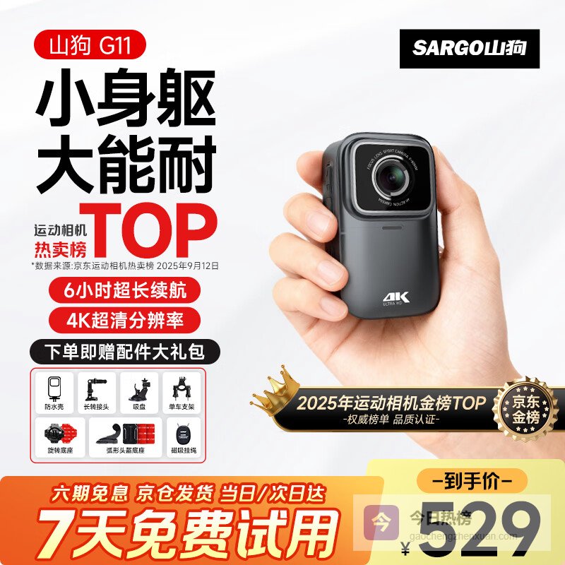 【京东自营】山狗G11拇指运动相机4K高清摩托车行车记录仪非360全景相机头盔胸前骑行vlog神器小¥