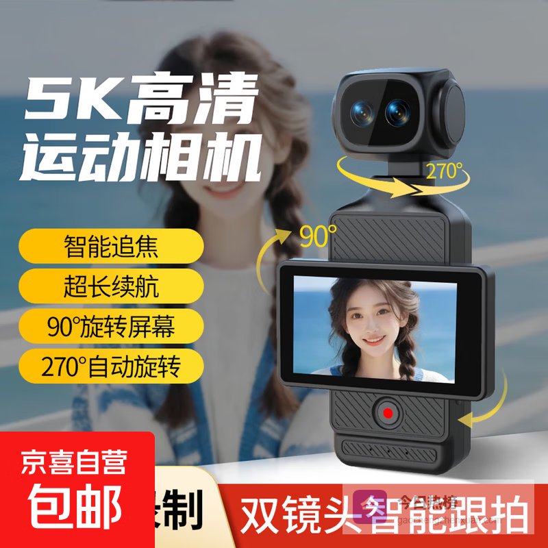 【京东自营】墨雪卿MUOXUEQN手持运动相机5K高清智能跟拍运动相机270°自动旋转超长续航云台相¥