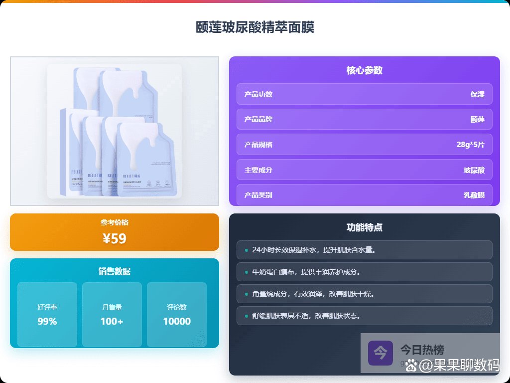 不过,可以肯定的是,颐莲面膜总体来说还是挺好用的!尤其是皮肤干燥或者敏感的时候,敷一片真的能缓解不少问题。至于“好用吗”,我的答案是肯定的,但要选对款!别担心,我做了功课,结合自己的使用感受,大概总结了6款口碑还不错的颐莲面膜,都是性价比超高的选择,希望能帮到大家。接下来我整理了6款口碑不错的,大家可以看看。