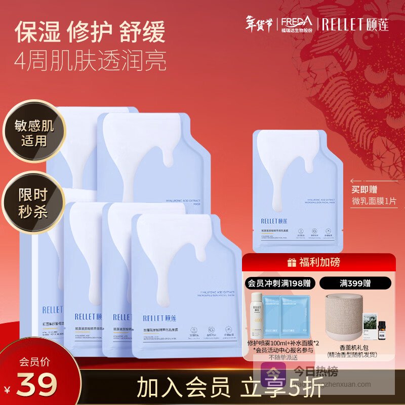 颐莲(RELLET)玻尿酸精萃微乳面膜 温和养护干敏肌必备 28g*5片 情人节礼物¥