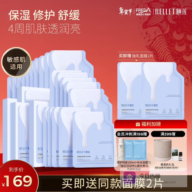 颐莲(RELLET)玻尿酸精萃微乳面膜 温和养护干敏肌必备28g*20片 情人节礼物¥