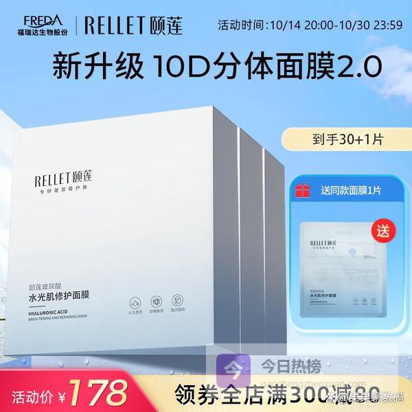 颐莲(RELLET)玻尿酸补水保湿面膜贴 滋润保湿轻薄透气送女友新年礼物 1盒/10片¥