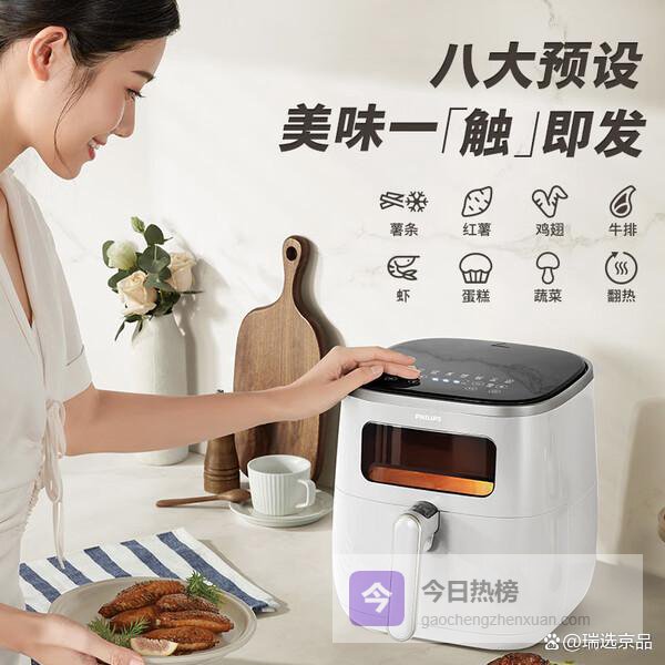 第2款:飞利浦HD9257/20【可视窗口设计】这个空气炸锅有个可视窗口,这个设计确实挺实用。以前做炸物最怕的就是不知道里面熟没熟,有了这个窗口,随时都能观察食物的上色情况,火候掌握起来就方便多了,再也不用担心炸糊了。