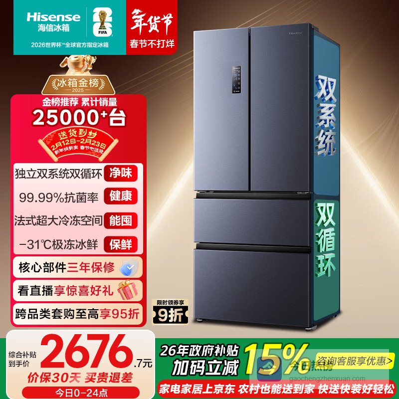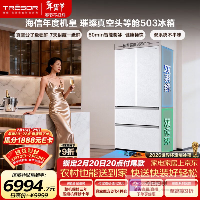 海信年度机皇|璀璨503L法式多门冰箱真空科技双系统自动制冰嵌入世界杯定制冰箱TR-503U6FZSQD国家补贴¥