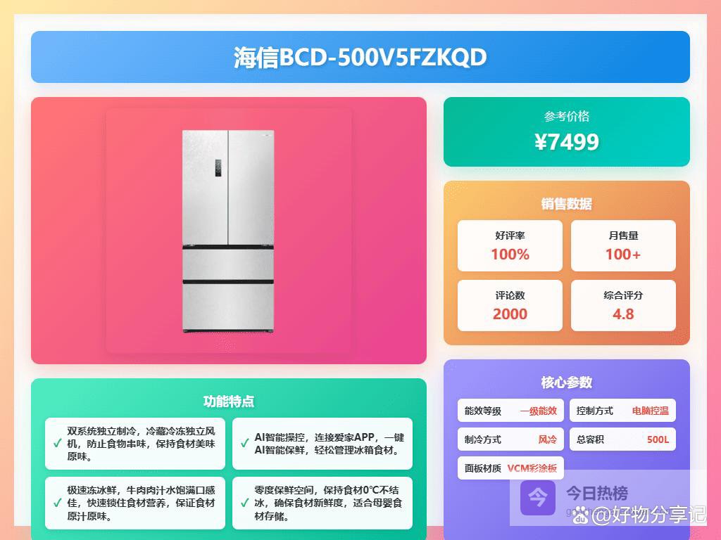 海信法式四开门冰箱质量怎么样,几款型号性价比高1、海信BCD-500V5FZKQD