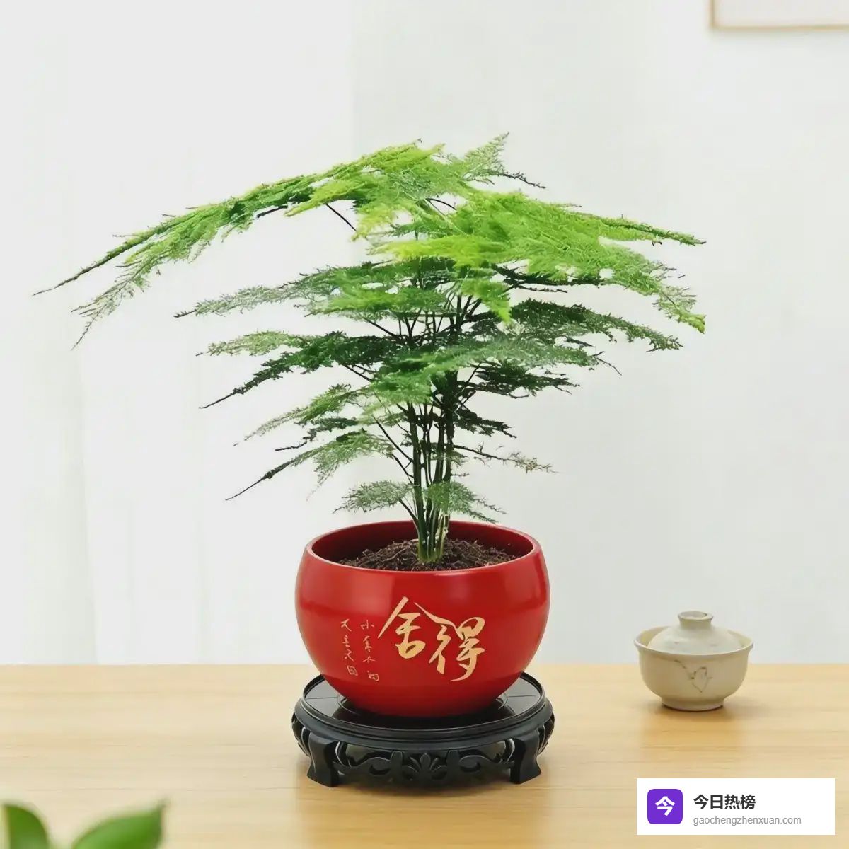 五、文竹盆栽:书香气息的优雅之选如果你追求的是高雅脱俗的办公环境,文竹绝对是你的不二选择。它纤细的枝叶如同羽毛般轻盈,整体造型飘逸灵动,特别适合放在书房或创意工作者的桌面上。