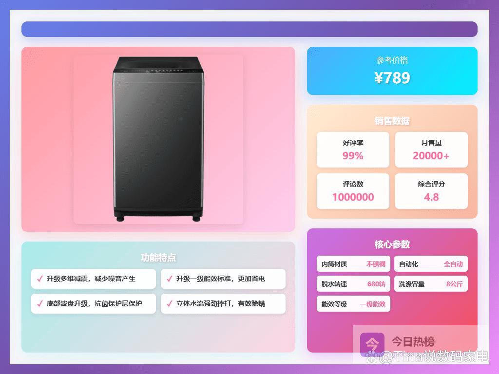 洗衣机用久了,是不是总觉得洗不干净?尤其是梅雨季节或者冬天,衣服晾不干,总有一股怪味,想想都头大!更别提藏在洗衣机内桶里的那些细菌,想想贴身衣物在里面搅啊搅,简直不敢细想。所以说,一台靠谱的全自动洗衣机,绝对能提升生活幸福感。选购洗衣机可不是小事,毕竟要用好几年,选对了省心省力,选错了糟心费钱。