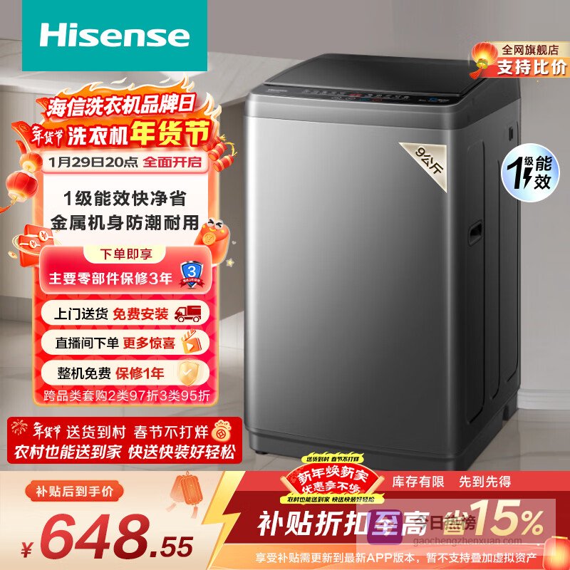 第1款:海信HB90DC30海信这款波轮洗衣机,主打一个实用。9公斤的容量,试了下,洗15件T恤或者一套四件套是没问题的。它还挺省电,一级能效,官方说每次洗衣服大概用0.1度电。100%除螨这个功能确实不错,感觉洗完的衣物更放心。