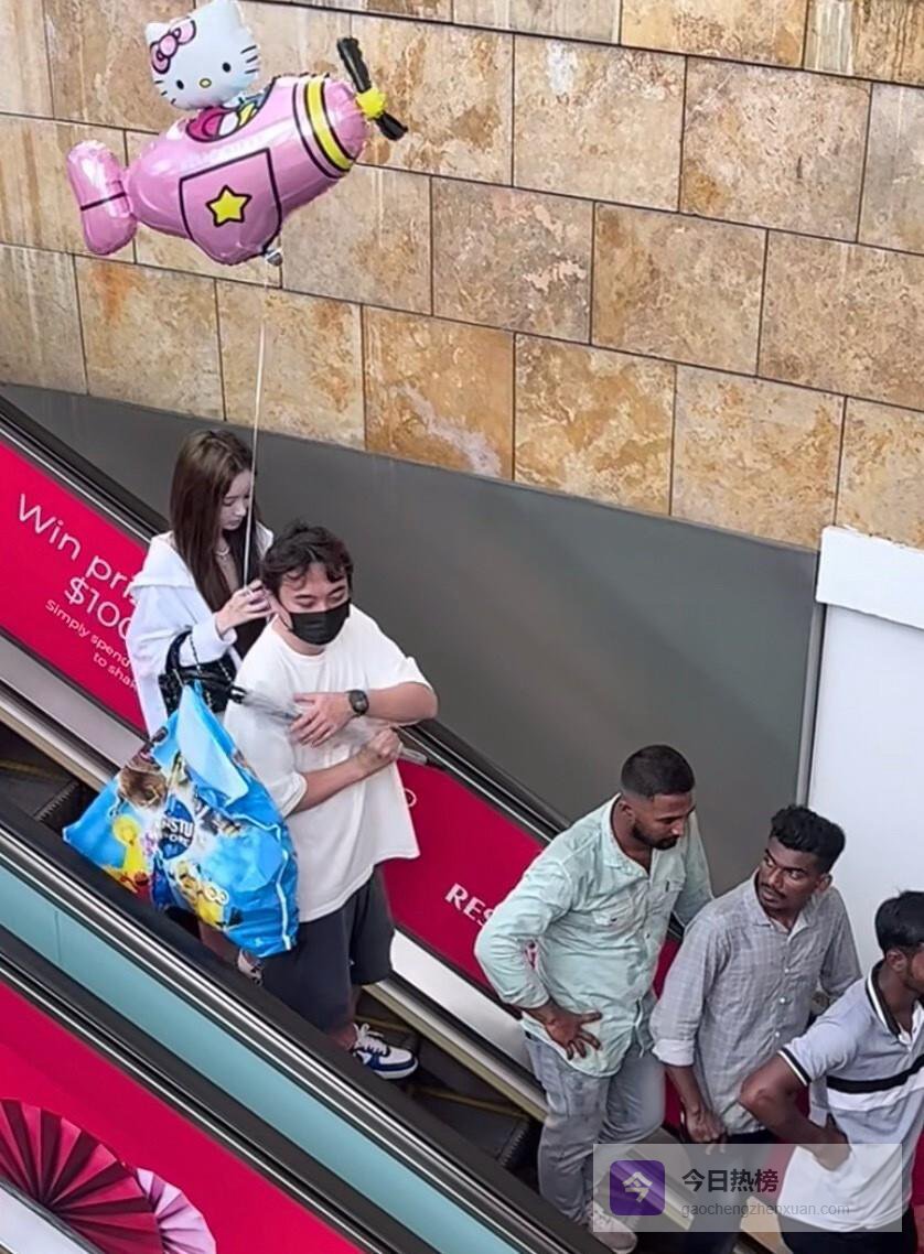 在商场里,他穿着白T恤红短裤,手里提着好几个沉甸甸的购物袋,像个尽职的“挑山工”。当懒懒想自拍时,他会特别顺从地凑过脸,对着镜头露出配合的笑容。电梯前方有外国路人回头,瞪大眼睛看着这一幕,脸上写满了惊讶和好奇。这些碎片拼凑出的,是一个看起来贴心、稳定甚至有些“普通男友”的形象,完全不是我们记忆中那个锋芒毕露的浪子。