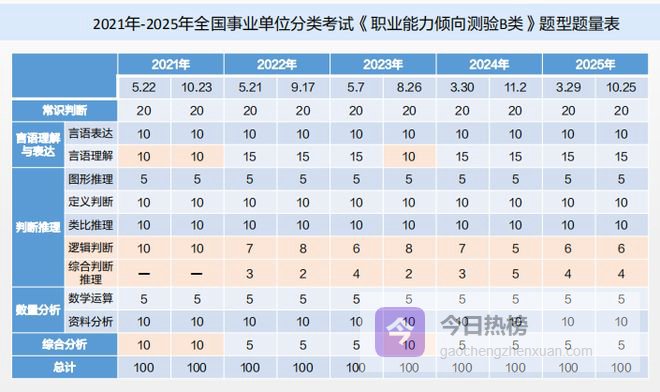 事业单位联考ABCDE类五个考试类别的笔试科目均为《职业能力倾向测验》和《综合应用能力》。不同类别科目考试内容不同 ,今天我们来看职测的区别点击查看考试大纲
