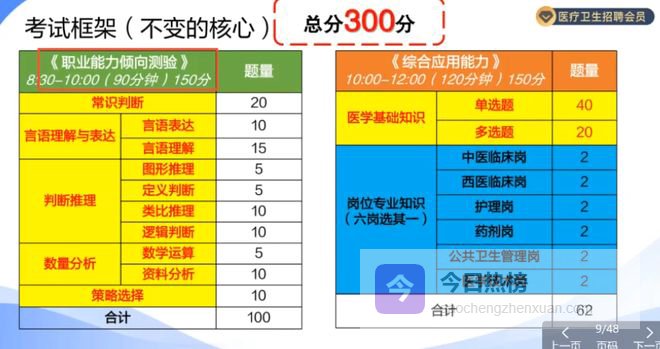 笔试内容:《职业能力倾向测验(E类)》包括常识判断、言语理解与表达、数量分析、判断推理、策略选择等部分。《综合应用能力(E类)》试卷主要由医学基础知识和招聘岗位专业知识应用能力两个部分组成。其中,医学基础知识部分占比60%,所有应试人员必答;招聘岗位专业知识应用能力部分占比40%,具体分为中医临床、西医临床、药剂、护理、医学技术、公共卫生管理六个类别,应试人员应根据报考岗位选做相应类别的试题。