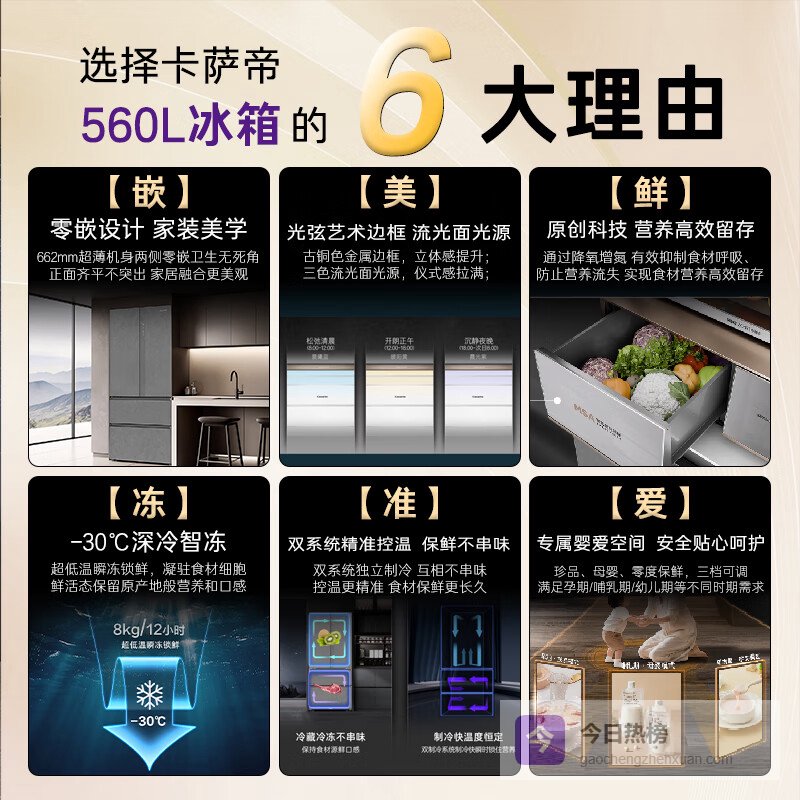 现代家庭对冰箱的需求早已超越基础冷藏功能,超薄机身、零距离嵌入、长效保鲜成为品质生活的标配。卡萨帝作为高端家电代表,其揽光、原石系列冰箱凭借前沿科技与艺术设计,重新定义了厨房存储美学。本文将深度解析三款旗舰机型,助你找到匹配家居风格与生活习惯的保鲜专家。