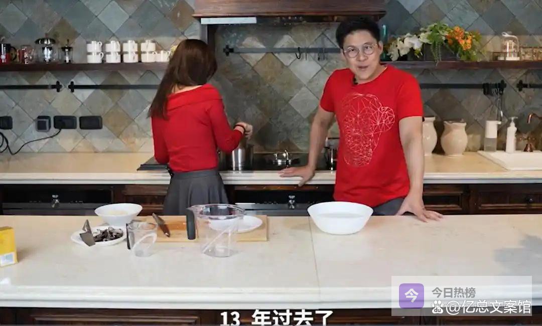 这段暖心视频拍摄于大年初二,夫妻俩身穿简约红色家居服,在厨房一起制作粤式传统点心马蹄糕,寓意马年步步高、马到功成。画面温馨又接地气,完全没有豪门架子。霍启刚一边帮忙搅拌糖浆,一边自然提起:“我们2012年结婚,到今年已经13年啦。”正在专心拌粉的郭晶晶猛地抬头,瞪圆眼睛满脸不可置信,连续追问确认,呆萌模样逗笑众人。