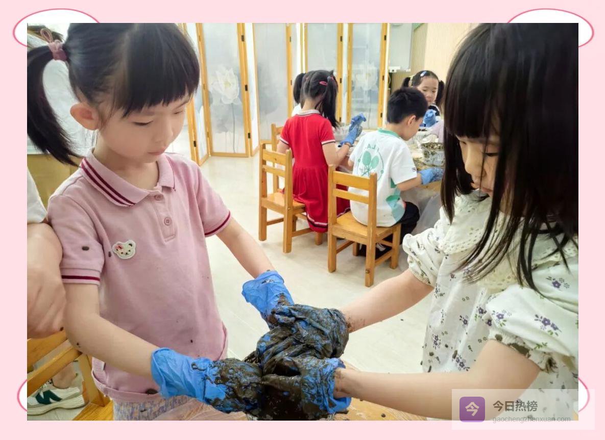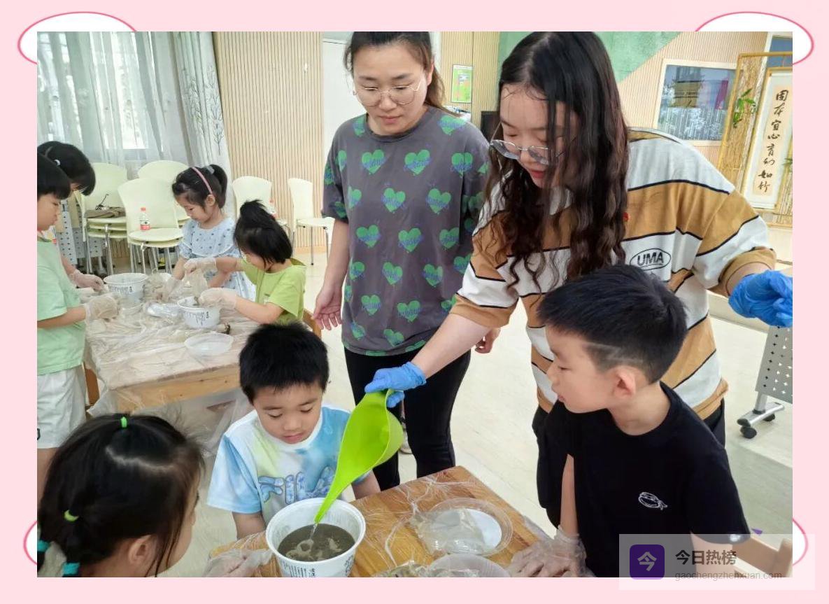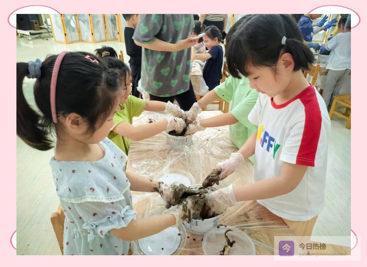 △ 合作的力量 “我来和泥!”“我帮你擦手套!”“哎呀,泥点溅到脸上了!”笑声混着泥香飘满角落。当最后一粒种子稳稳落盆,孩子们齐声欢呼:“大功告成!”那一刻,他们亲手把夏天按进了泥土。