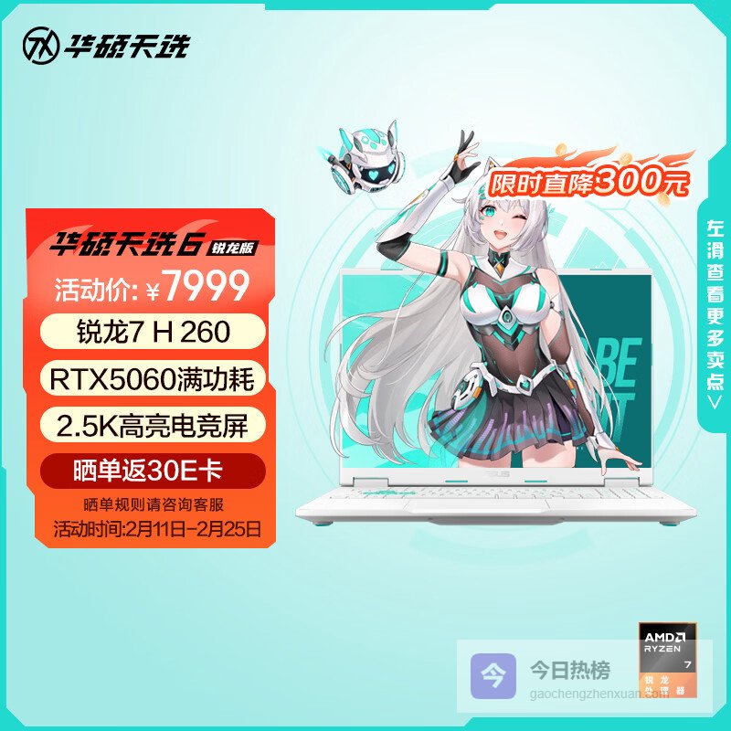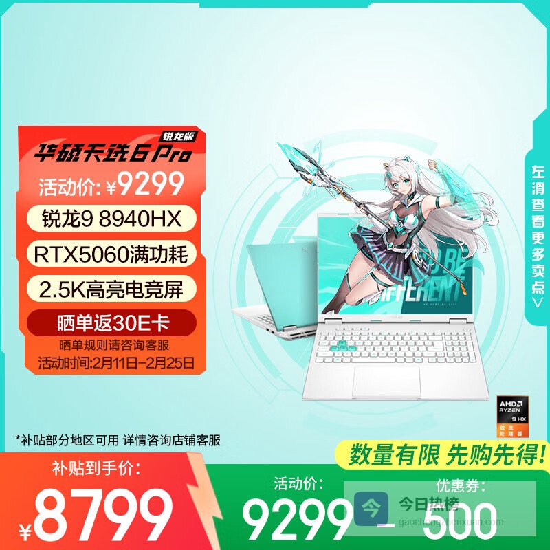 【品牌直营】华硕天选6Pro酷睿版2025游戏本补贴15%高性能酷睿HX16英寸RTX50显卡学生游¥