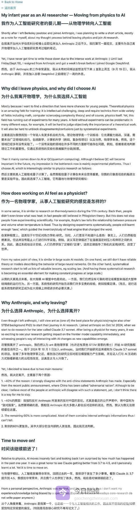他在离职博文里写得非常克制,说自己“强烈反对Anthropic的涉华言论”。但我告诉你们,那40%的公开原因只是遮羞布,剩下60%没说出口的,是他对AI研究“燃素说”阶段的不屑。