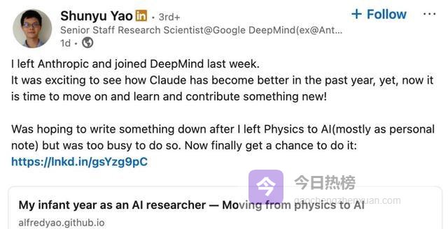 而且你们注意时间线:2025年9月19日离职Anthropic,9月29日入职Google DeepMind。10天,10天!谷歌甚至连背调都像开了倍速。为什么?因为皮查伊知道,这种人落在对手那边,哪怕多一天,都是对自己的残忍。