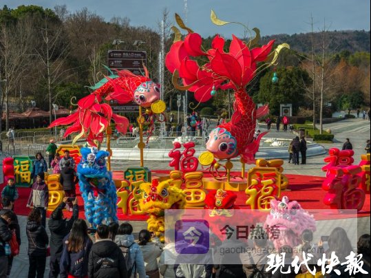 来到牛首山,众多打卡点吸引市民游客,新春氛围浓厚,《飞天乐舞》《锦鲤送福》《瑞狮福鸣》等沉浸式演艺轮番上演,非遗与民俗可观、可赏、可互动。同样,金陵小城热闹非凡,以“福潮金陵年”为主题,非遗滚灯、火舞表演、非遗铁花秀等节目上演,浓浓金陵年味。