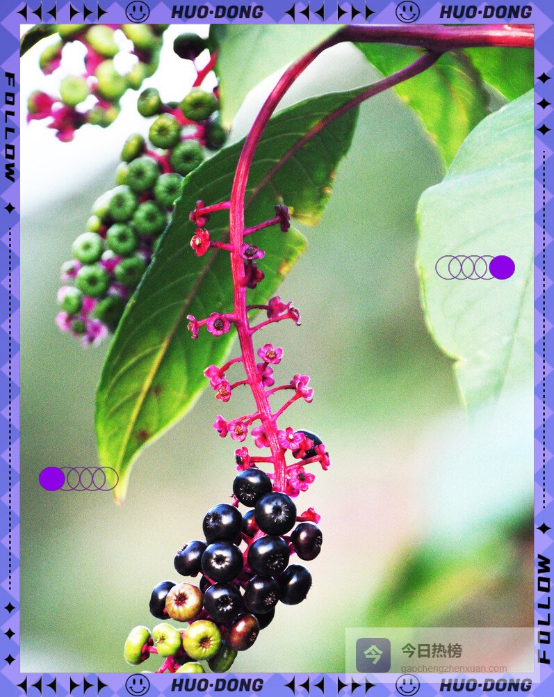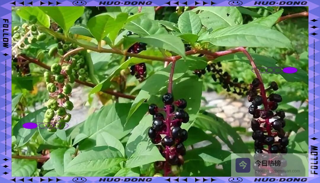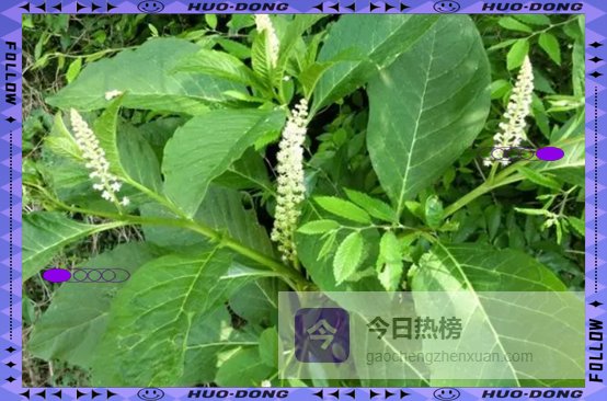 直立草本可长到2米,6—8月开出绿白小花,9月结出紫黑色小浆果,像迷你葡萄,因此俗称“美国葡萄”。但全株含剧毒皂苷,人畜误食会恶心、呕吐、腹痛。