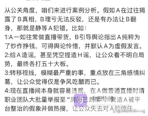 第一种是污名化A的动机,若A正常直播带货,B就引导舆论,指责A揭露真相只是为了炒作挣钱,借机博取公众怜惜。