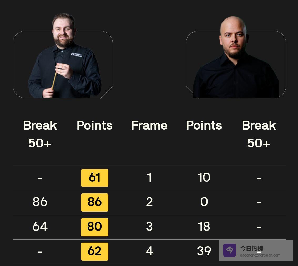 威尔士00后小将杰克逊·佩奇单杆打出86分、64分的表现连胜四局以4-0横扫前世界冠军布雷切尔完成晋级。