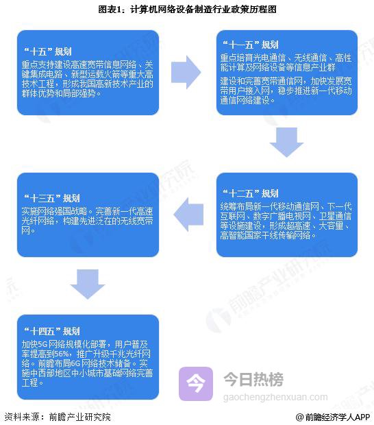 计算机网络设备制造行业是我国电子信息产业领域的重点行业。近年来,我国计算机网络设备制造行业政策不断丰富,政策体系的不断完善推动行业规范化发展,进而提升行业整体的竞争力,引导行业内企业持续健康发展。计算机网络设备制造行业政策发展历程如下:
